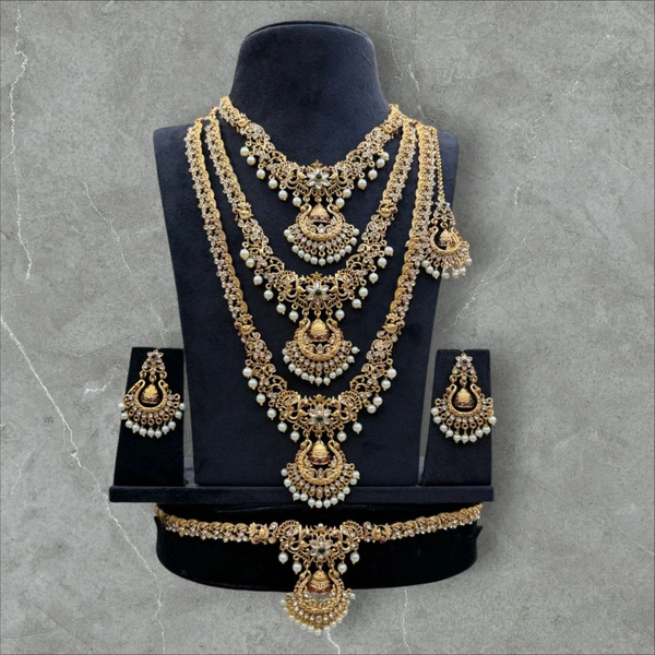Semi Bridal Combo Set is a graceful and meaningful piece of jewelry that combines classic elegance with spiritual significance.