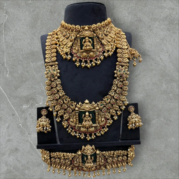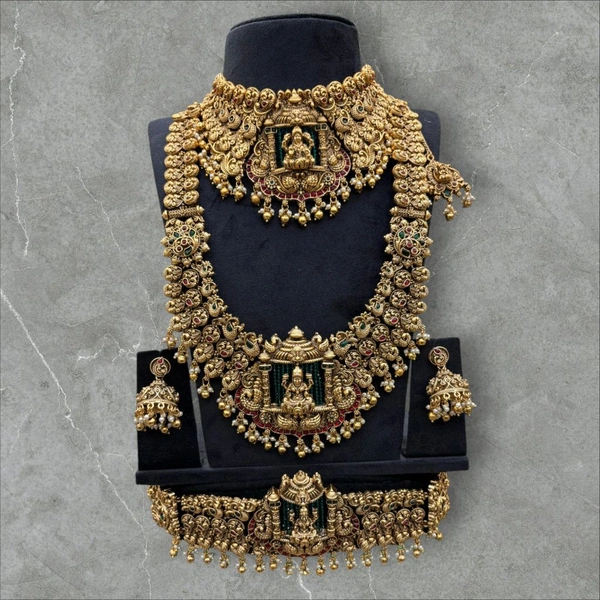 Our Grand Bridal Combo Set is the epitome of opulence and sophistication, specially curated for your momentous day. This remarkable set combines the grace of semi-bridal jewelry with the grandeur of bridal pieces to create a stunning ensemble that will leave a lasting impression.